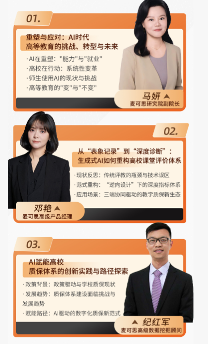 主讲人:马妍(麦可思研究院副院长)、邓艳(麦可思高级产品经理)、纪红军(麦可思高级数据挖掘顾问)