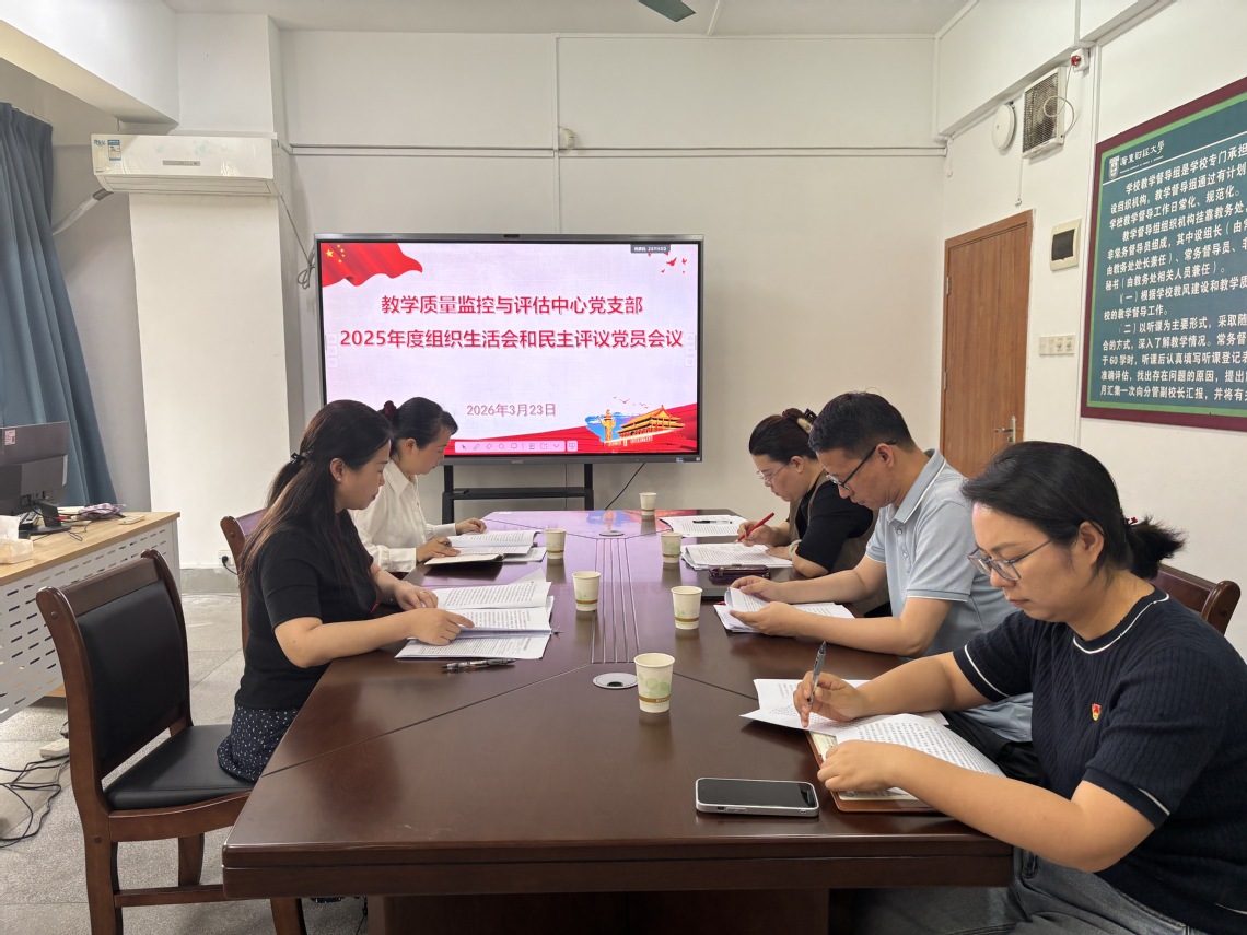 3月23日下午,教学质量监控与评估中心党支部在明德楼214会议室召开2025年度组织生活会暨民主评议党员会议,支部全体党员参加,支部书记邓欣欣主持会议。